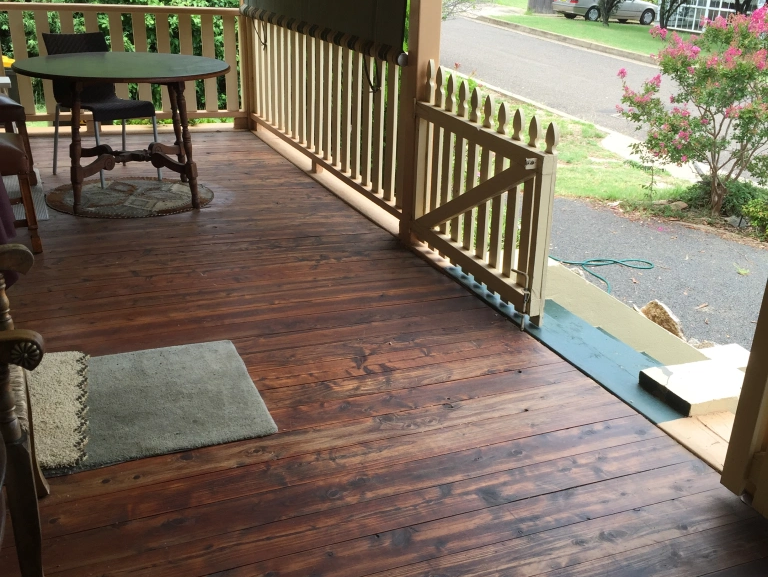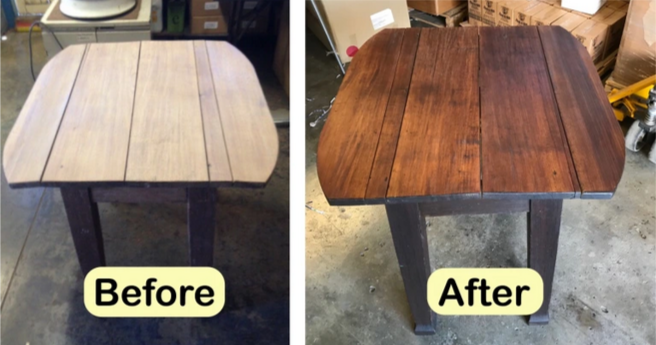 Below is the table that David was coating with Orange Tung Wood Oil in the video above, as it appeared before treatment, and how it now appears after the job is finished.